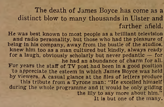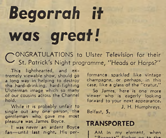 early days of local television in Northern Ireland. Having worked for both BBC