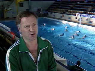 Robin Walsh meets Mr Doherty, swimming instructor, at a pool in Belfast. Mr Doherty has taught many children to swim.